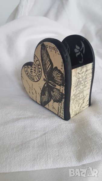 Ръчно изработен от дърво тематичен салфетник, подбран в тази форма по повод на идващите празници. Използван е декупаж, акрилни бои и лак, напълно безвредни и натурални. Широчина 13 см, височина 11 см. Романтичен подарък за ценители на ръчната изработка в стил винтидж.