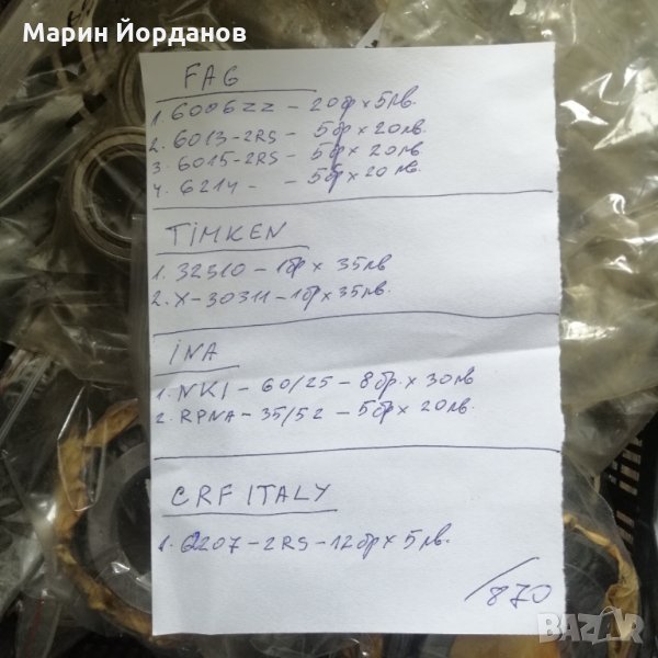 Лагери SKF, FAG, TIMKEN, SNR и др. → Обява 31584338