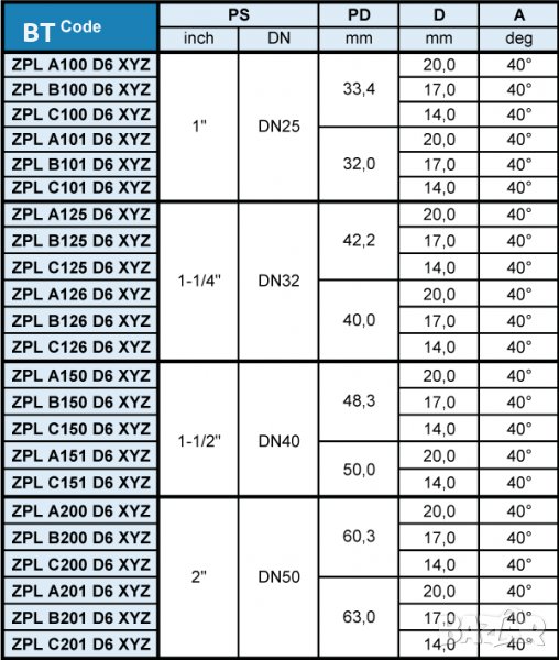 присъединителни размери. Може да се извърши доставка на дюзи по индивидуална