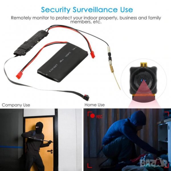 Размери: камера 0.6 * 0.6 * 0.5cm на WiFi модул: 9.5 * 2.5 * 0.5cm