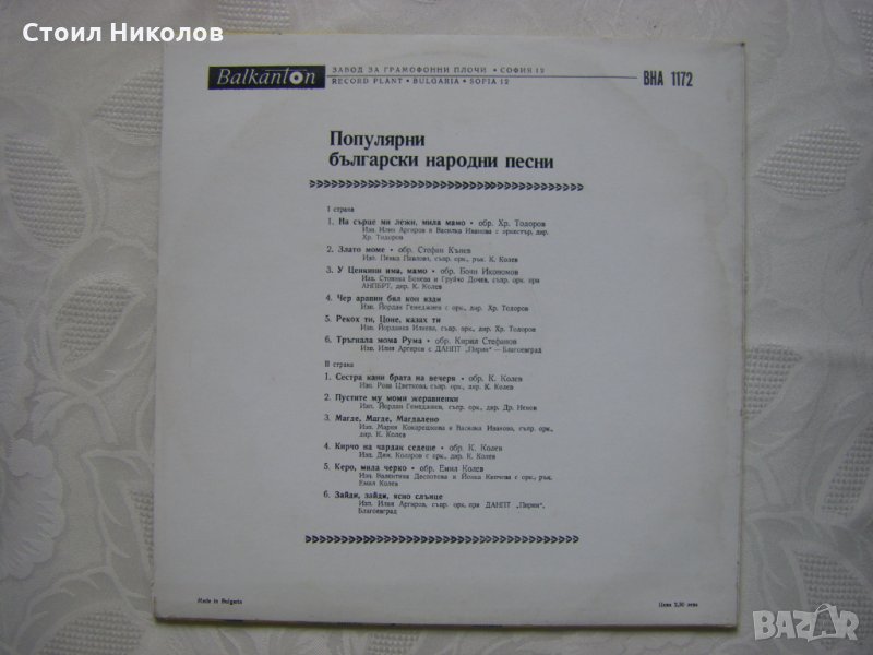 ВНА 1172 - Популярни български народни песни → Обява 31591520