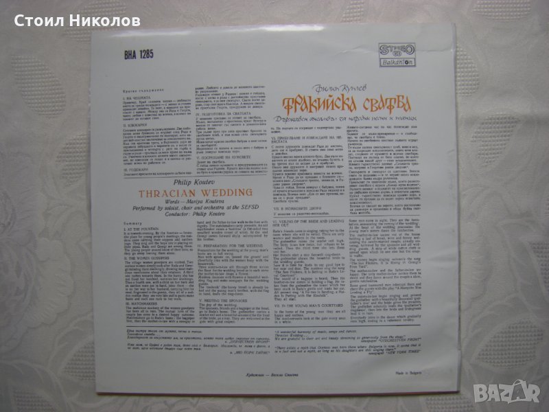 Грамофонна плоча - ВНА 1285 - Тракийска сватба - Изпълнение на ДАНПТ Филип Кутев