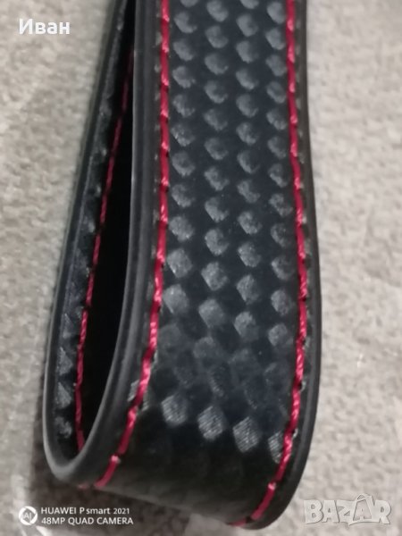 От страни на кожата има шит здрав червен конец.