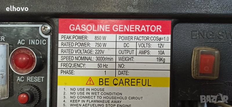 Бензинов монофазен агрегат за ток 850 W → Обява 31598538