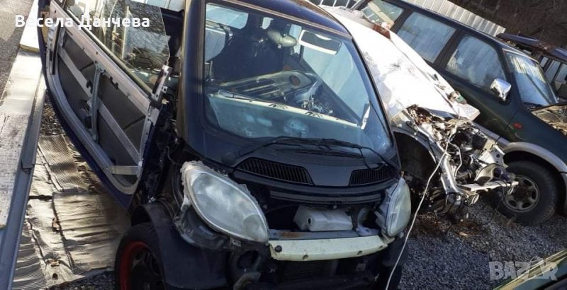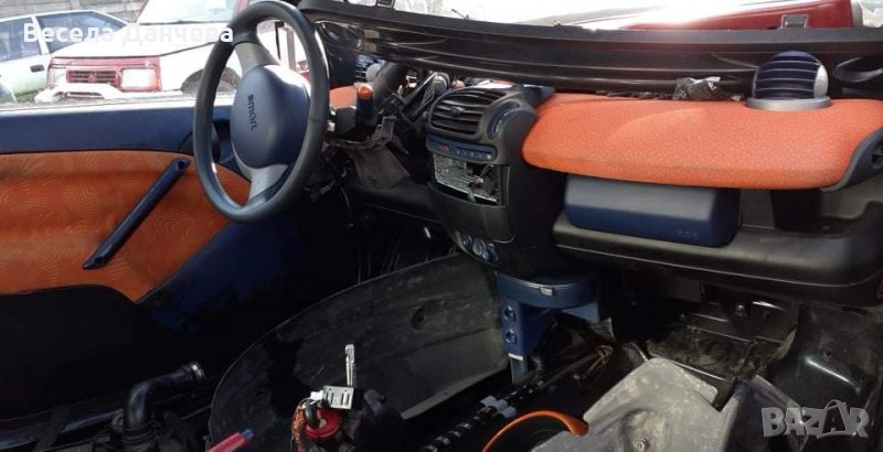 Смарт на части, волан и много други части от колата. Двигателят е наличен 600 кубика 40 kw. Много други части от колата също са налични. Може да закупите и цялата кола във вида в който е останала.