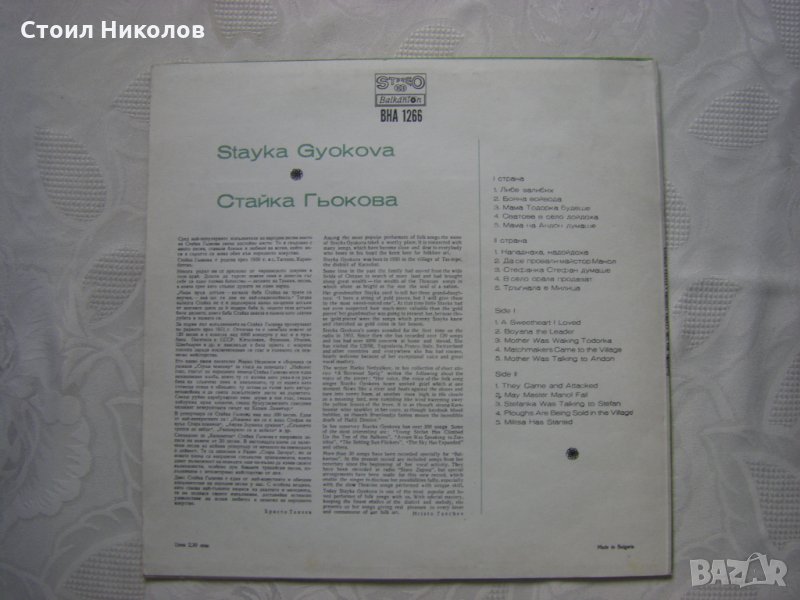 Грамофонна плоча- ВНА 1266 - Стайка Гьокова - Народни песни