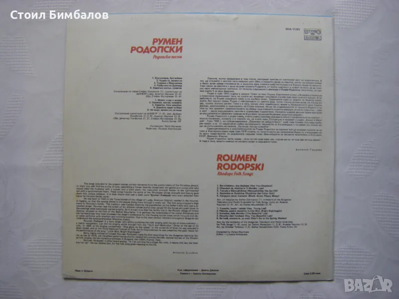 Грамофонна плоча - ВНА 11781 - Родопски песни - Румен Родопски