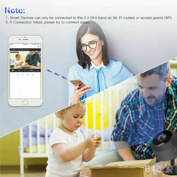 Продавам чисто нови качествени мини безжични Full HD WiFi камери с магнит за закачане на всякакви повърхности. Много малки скрити IP камери / шпионски / охранителни / бебефон Wireless камери със собствена батерия и с възможност за запис на звук, запис на FullHD видео и правене на снимки с висока резолюция. Камерите имат вградена батерия, микрофон, инфрачервени LED диоди за работа в НОЩЕН режим и имат възможност да правят запис върху micro SD (TF) карта и да се свързват и управляват от телефона през безплатно приложение. Освен това може да влезете в приложението по всяко време, за да видите какво се случва в реално време и никога да не се притеснявате, че ще пропуснете нещо важно.