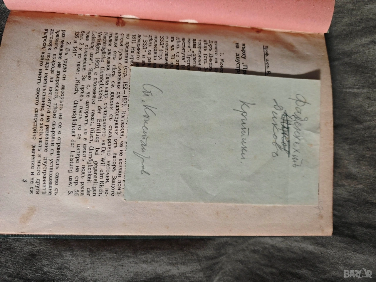 подвързани заедно :1.Критика върху " Приноси към учението за развалянето на двустранните договори по чл.70 от ЗЗД" от д-р. Л.Диков - 55 стр. Й. Фаденхехт. 1930