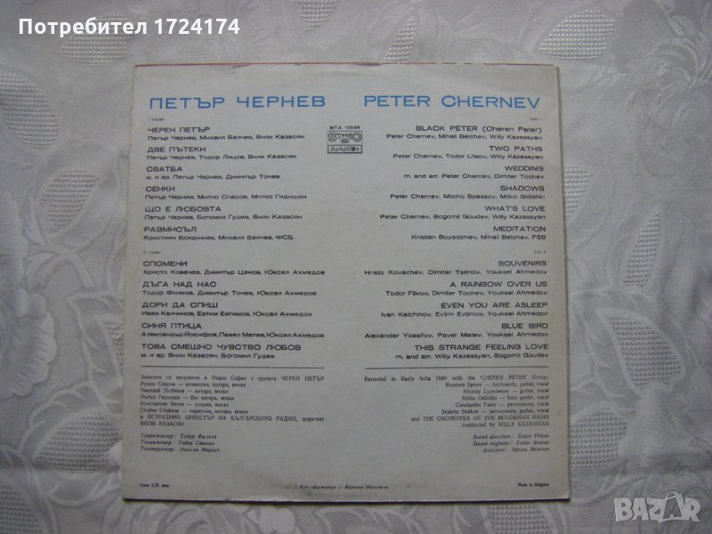 Грамофонна плоча - ВТА 10538 - Петър Чернев - Черен Петър