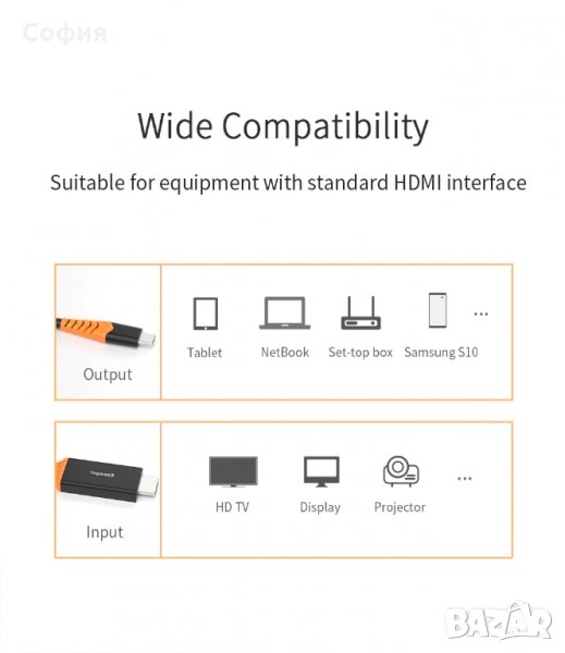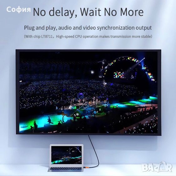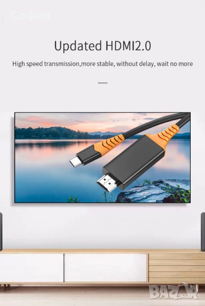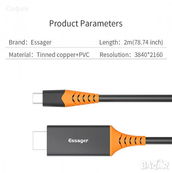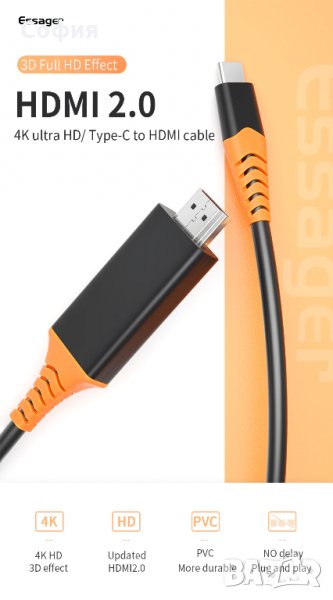 Висококачествен кабелпреход от Type C to HDMI HDTV 4К с резолюция 2840*2160 и дължина 2 метра на марката ESSAGER. С този кабел ще можете безпроблемно да споделяте изображения и видеа от екрана на вашият смартфон към HDTV екран, прожектор или друго устройство.