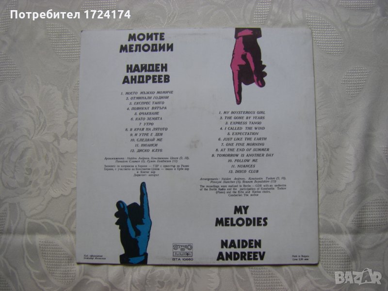 Грамофонна плоча - ВТА 10660 - Моите мелодии. Найден Андреев. Изп. оркестър на Радио Берлин с участието на Константитн Цеков - пиано и Ербе хор и Кантас хор. Диригент авторът