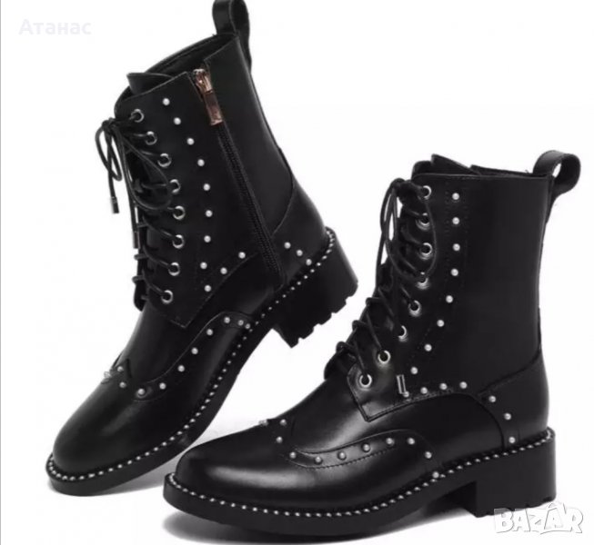 Кожени дамски боти с перли, размер 37 → Обява 31611415