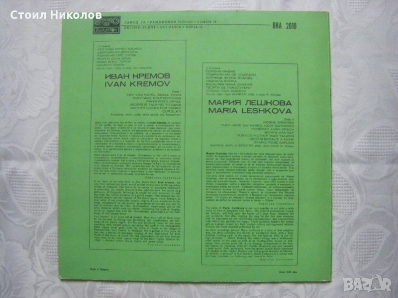 изпълнява Иван Кремов; съпровожда народен оркестър, обраб. и диригент Ан. Наумов.