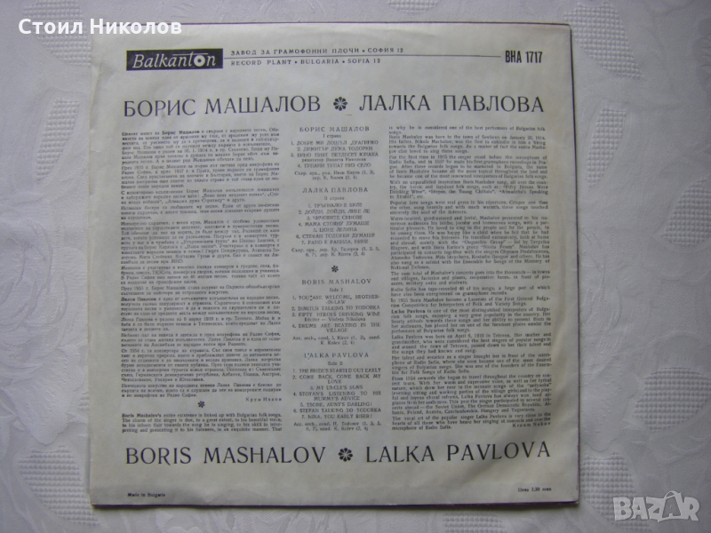 Грамофонна плоча - ВНА 1717 - Борис Машалов и Лалака Павлова