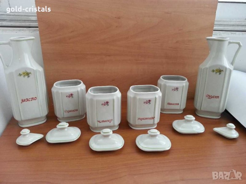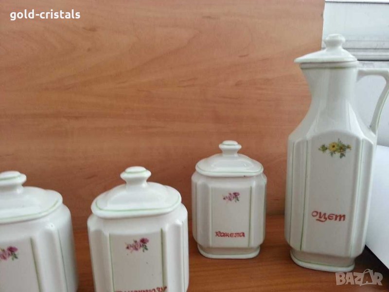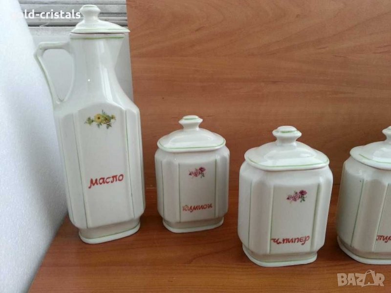 Стар български порцелан буркани за подправки 4бр бурканчета -49лв масло и оцет -45лв сервиз комплект сет лот ретро арт декор винтидж колекция стари старинни антикварни предмети обзавеждане за дома и семейството подходящи за подарък за ценители и колекционери