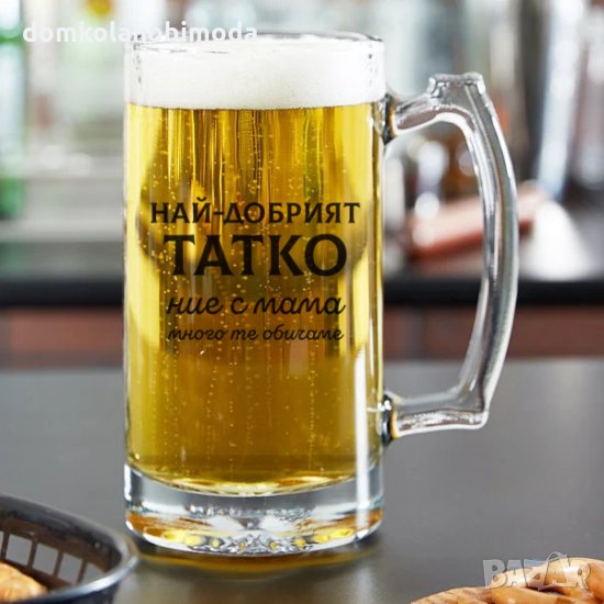 Халба за бира с надпис Най-добрият ТАТКО нис с мама много те обичаме, 500 мл