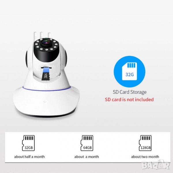 - Камерата може да запише видеото на SD карта. Максимална поддръжка 128 GB SD карта.