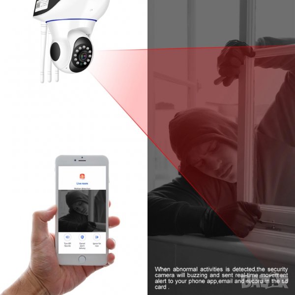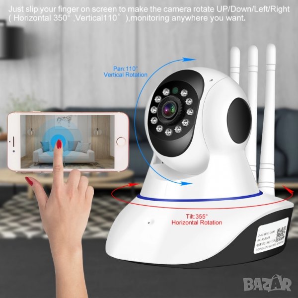 Новият модел 2021 висококачествена камера с три антени: получава по-силен Wi-Fi сигнал, по-лесена за управление от разстояние с по високо качество на видеовръзката.