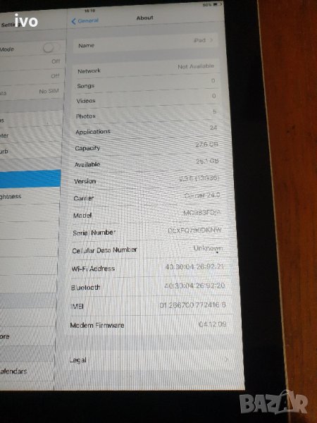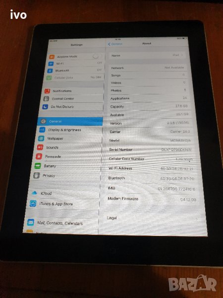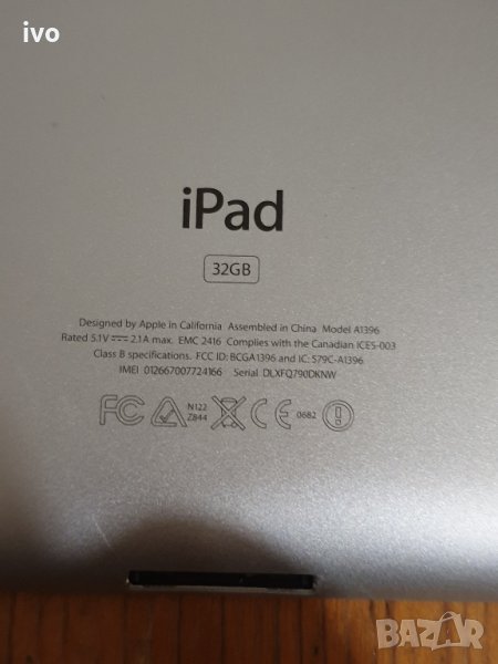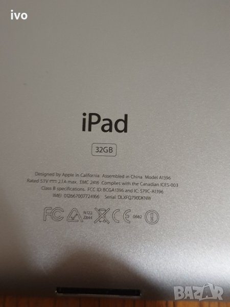 ipad a1396 32gb с четец за сим карта,работи отлично,батерия перфектна,няма icloud.