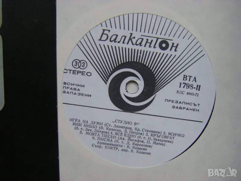Съпровожда Естраден оркестър на Комитета за телевизия и радио; аранжимент на песните и диригент Вили Казасян