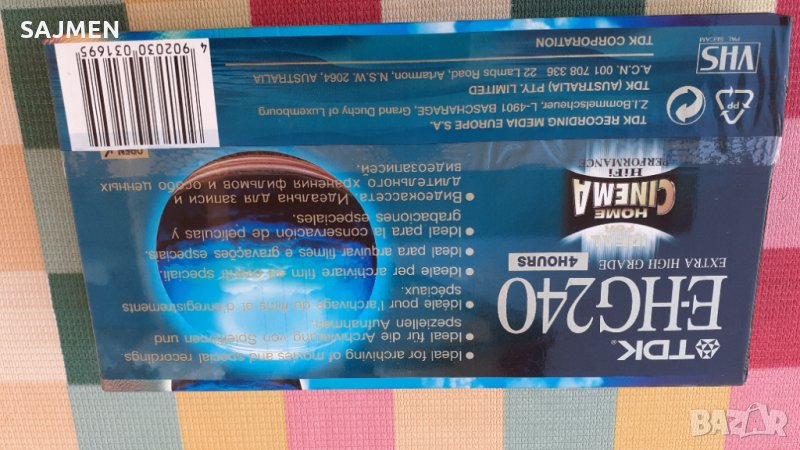 ПРОДАВАМ VHS касетки нови оригинал; TDK EHG 240 VHS HIFI PERFOMANCE ОРИГИНАЛНИ ПРОИЗВОДТСТВО, ЗА AUSTRALIA ЗА ДРУГ КОНТИНЕНТ. НИЩО ОБЩО СЪС ЕВРОПА И ЕВРОПЕЙСКИТЕ КАСЕТКИ И ЕВРОПЕЙСКИ ЛЕНТИ. ОБщО СА 50 БРОЯ ЦЕНАТА Е ЗА 1-БРОЙ ; ВНОС ОТ LATVIJA