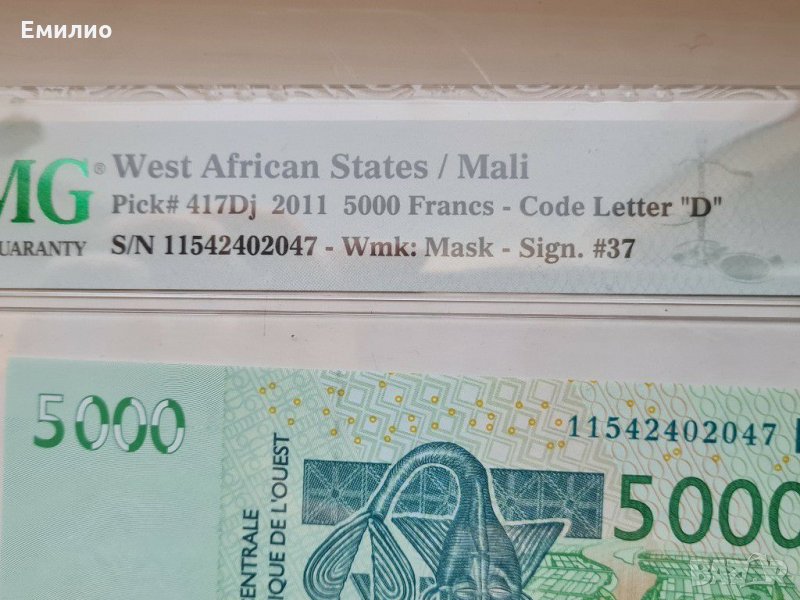 WEST AFRICAN STATES/ 🇲🇱  MALI 🇲🇱 5000 Francs 2011 PMG 67, снимка 1 - Нумизматика и бонистика - 31632745 WEST AFRICAN STATES/ 🇲🇱  MALI 🇲🇱 5000 Francs 2011 PMG 67, снимка 2 - Нумизматика и бонистика - 31632745 WEST AFRICAN STATES/ 🇲🇱  MALI 🇲🇱 5000 Francs 2011 PMG 67, снимка 3 - Нумизматика и бонистика - 31632745 1/3