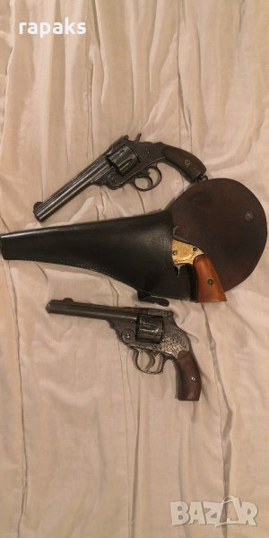 револвер Смит и Уестън с дълга и къса цев. Кобура е съвременно производство ръчна изработка, не е от Ибей и Амазон. Не е историческо наследство и е в прекрасно състовние. Налични и кобури за Върнан, Гасер, Смит, за карабини Мартина, ГРА, както и за пистолети Наган, Валтер Р38 и Люгер Р08.