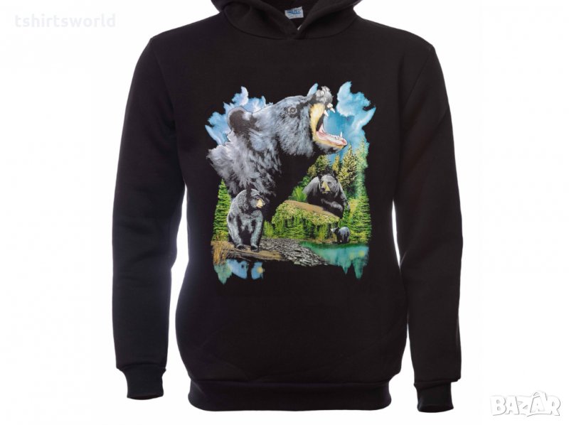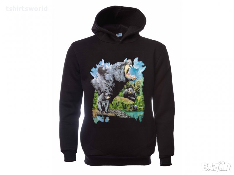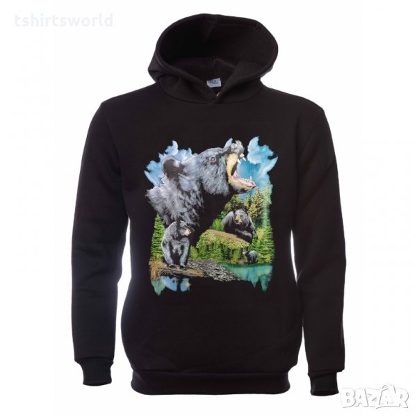 Страхотен нов мъжки суичър в черен цвят с качулка, две джобчета и трансферен печат Мечка. Произведен в България под марката PRINTEX от висококачествен 100% памук - триконечна пенирана вата с кардировка, което го прави изключително топъл и желан от нашите дългогодишни клиенти. Моделът е подходящ за пролетния и есенно-зимният сезон, има ластични маншети на китките и ханша, запазващи топлината. Разполага с мека подплата и два отворени джоба в страни. Свободната кройка го прави подходящ както за спорт, така и за ежедневно носене с дънкови панталони. Марката PRINTEX от години се слави със своите топли и качествени суичъри.