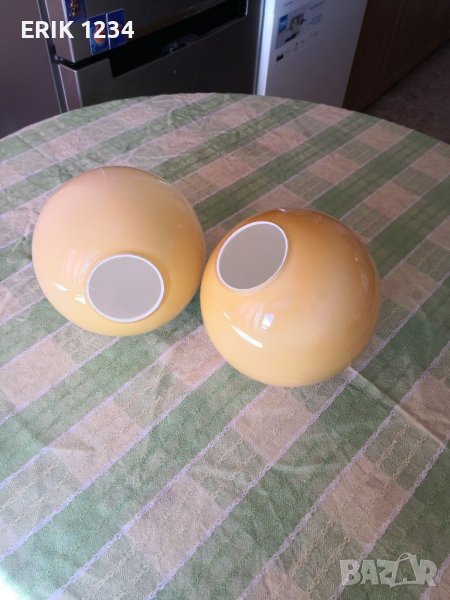 Жълтите стъкла за полилей - 3€. Последното стъкло на снимките 4€,Диаметъра на отвора на страната на фасунгата е 850мм.