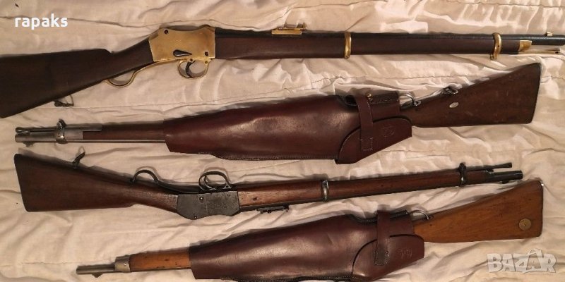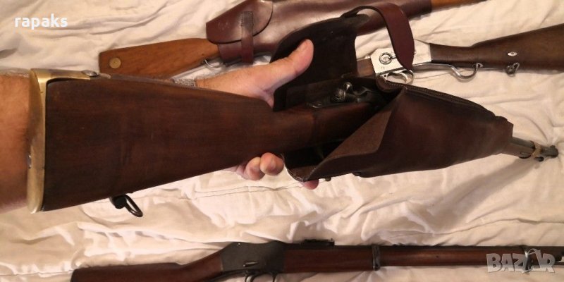 Масивен и напълно оригинален и автентичен кобур за карабина Пибоди, Хенри и всякакви Румънски и Швейцарски видове и разновидности на пушка Мартина. Кобура е съвременно производство ръчна изработка, не е от Ибей и Амазон. Не е историческо наследство и е в прекрасно състовние. Налични и кобури за