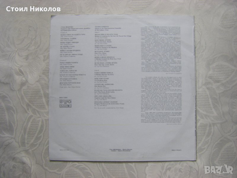 Съпровожда оркестър, обработка на песните Емил Колев (1, 2, 3, 5, 7, 8), Кирил Стефанов (6, 9, 10) и Иван Марин (4, 11, 12), диригент Емил Колев