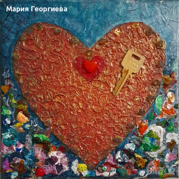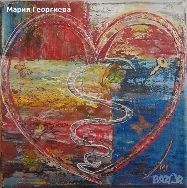 2. Пътека на любовта - без рамка 20х20 / смесена техника, платно на подрамка / 55лв