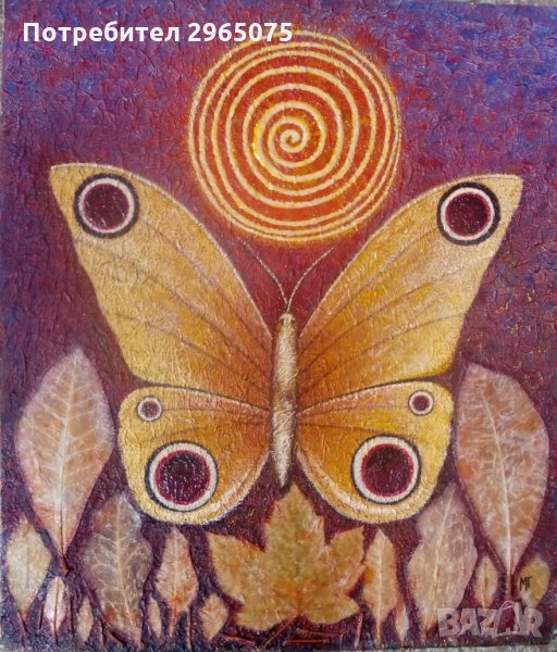 6. Есенна пеперуда - размер без рамка 35/40 смесена техника на обработен картон, предлага се с подходяща рамка 190 лв.