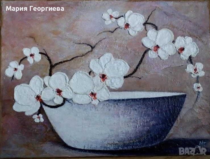 акррил, смесена техника на обработен картон, предлага се с подходяща рамка включена в цената / 165лв
