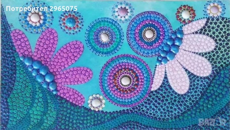 18 бр. исувани картини с акрил, смесена техника, 3D картини, платно на подрамка, картон или на дърво.
