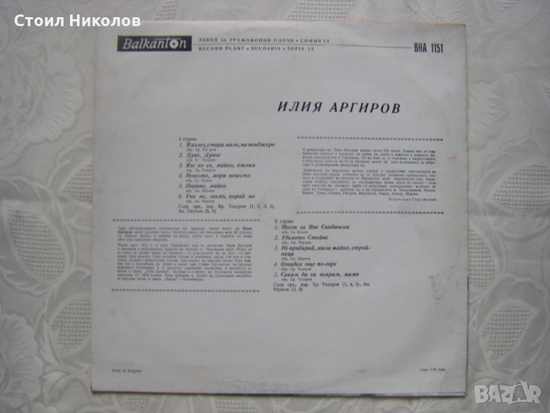Грамофонна плоча - ВНА 1151 - Народни песни в изпълнение на Илия Аргиров