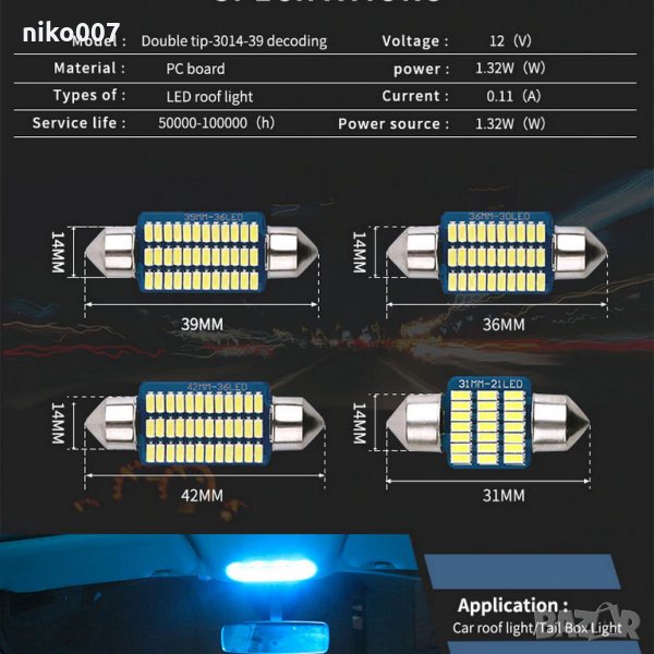 Супер силни лед крушки-дневни светлини-интериор-номер- C5W/C10W → Обява 31643342
