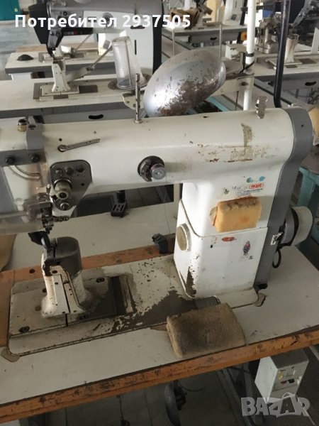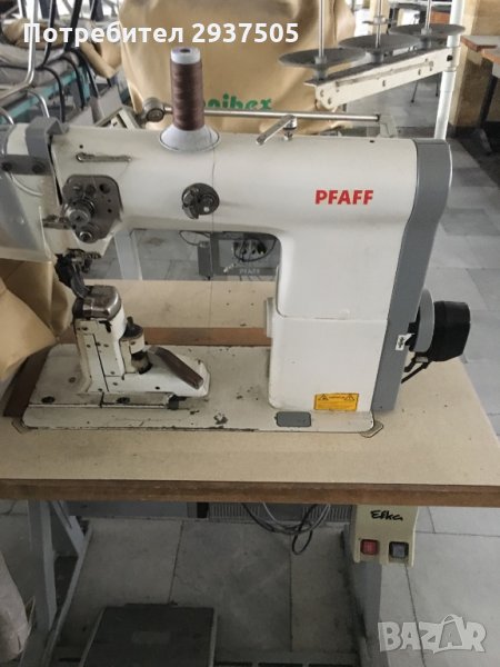 Бутилкови машини Pfaff 591 едноиглови с троен транспорт , автоматично рязане на конеца . Машините се продават без мотори..2 броя