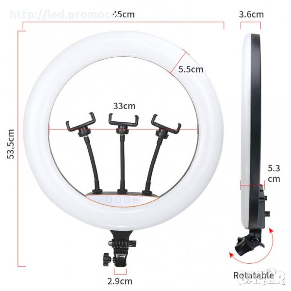 LED ринг лампа с трипод, 3 стойки за телефони и дистанционно Soft Ring Light, 45см