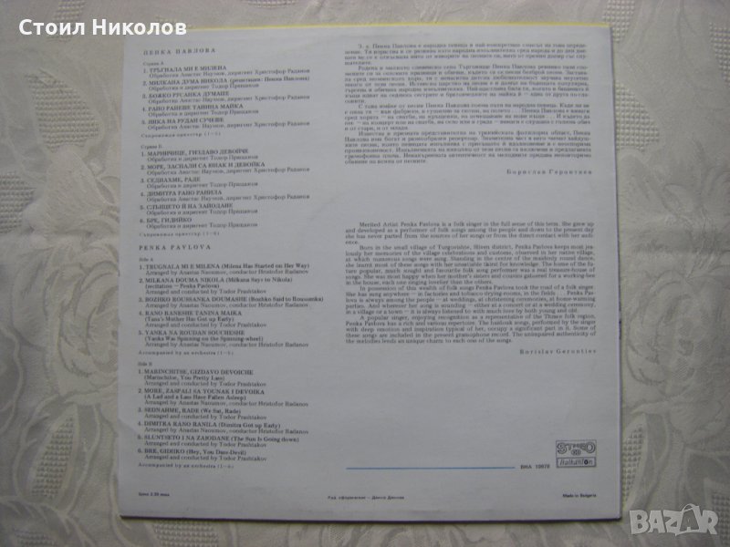 Грамофонна плоча - ВНА 10978 - Пенка Павлова - Тракийски песни
