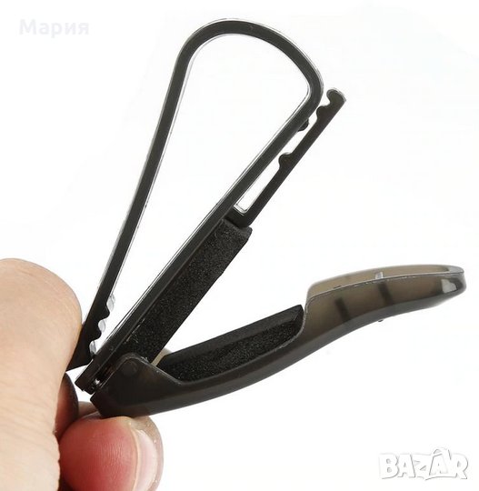 Щипка за сенника на автомобил. На нея може да закачите талони, карти, слънчеви очила и др. Не пречи на видимостта на шофьора.