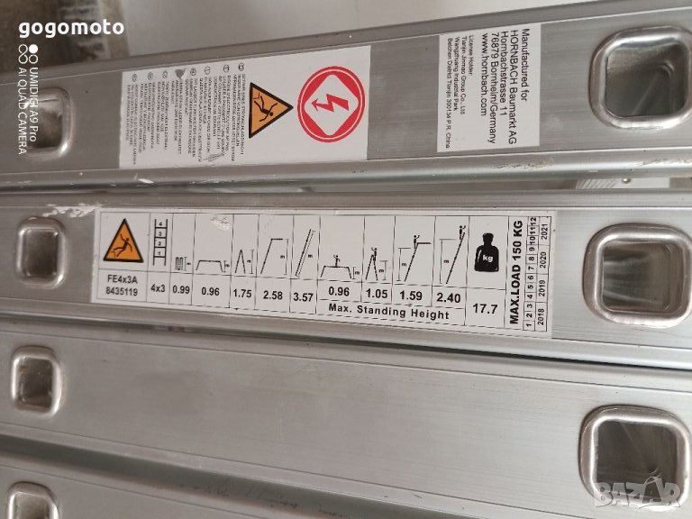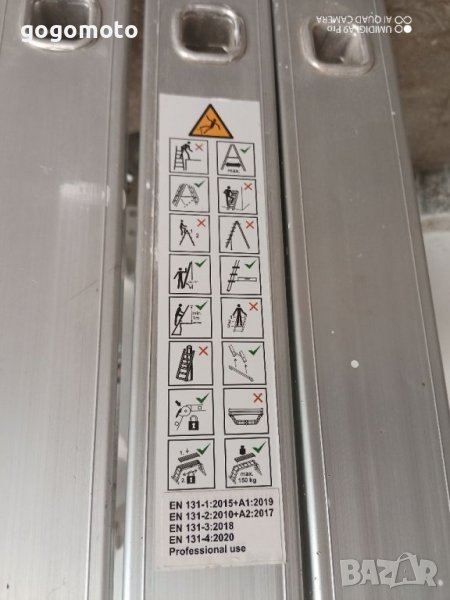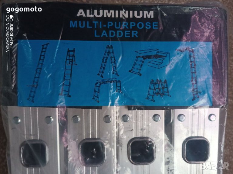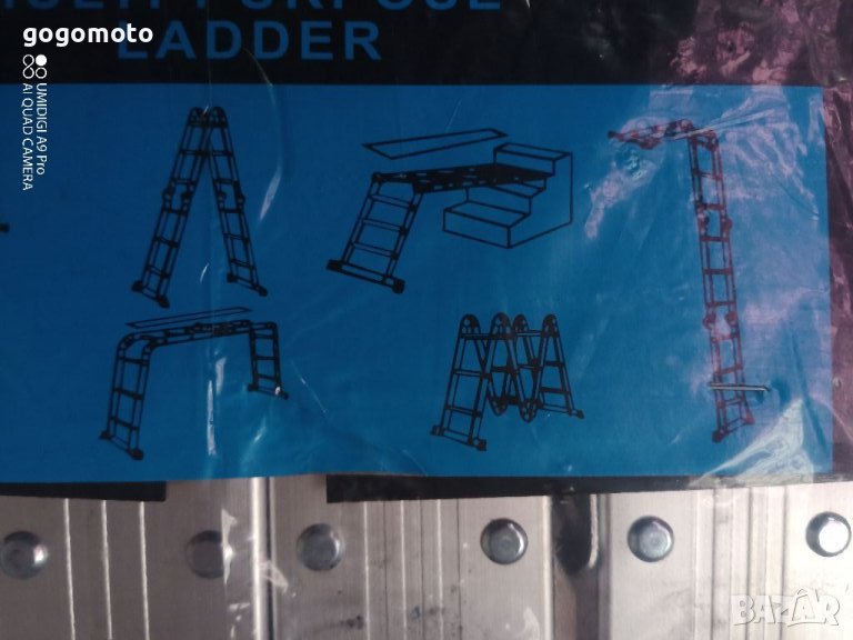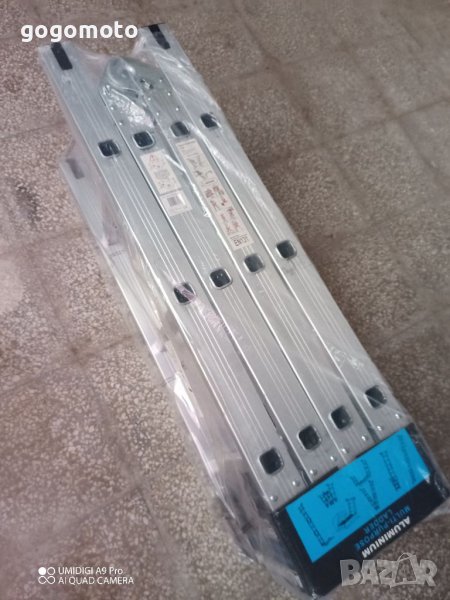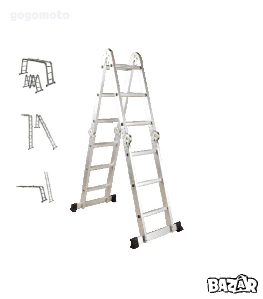 Многофункционална алуминиева стълба от 4 секции, свързани посредством самоблокиращи се панти (стави), позволяващи да се работи с различни конфигурации на стълбата.