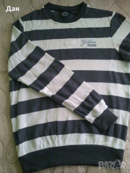 Суичъра е в много добро състояние ,а втората блуза е в добро запазено състоя.Размерите на етикета са Хл, но мисля, че отговарят на Л, като бяло-сивата блуза е малко по-голяма.Цената за двете заедно е 15лв