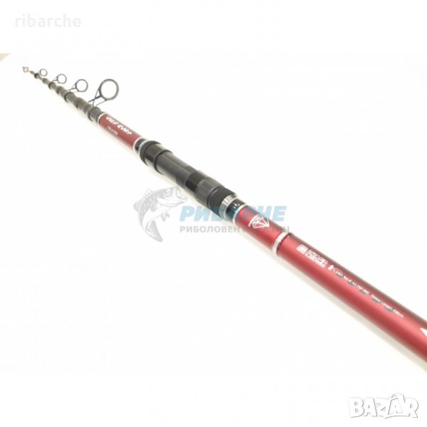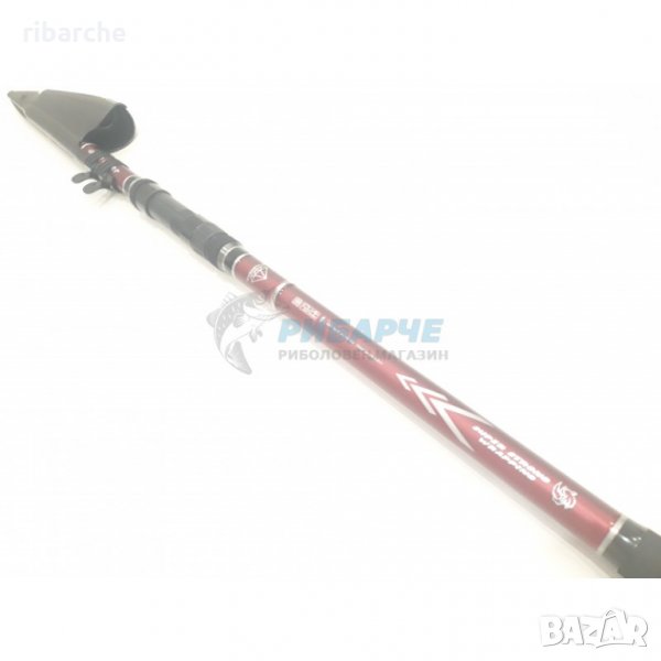 Нов модел телекарп със голяма акция и здравина ,създаден за по големи натоварвания.Може да се ползва и за спод ,а също и за риболов на толстолоб,амур,шаран.сом и други едри риби.Конструиран е от висок клас 24-Т карбон със голяма здравина ,широки и подсилени SIC водачи , като долният е 50мм.Върхът е също подсилен и въдицата е със стегнат и твърд строй,носеща на големи натоварвания