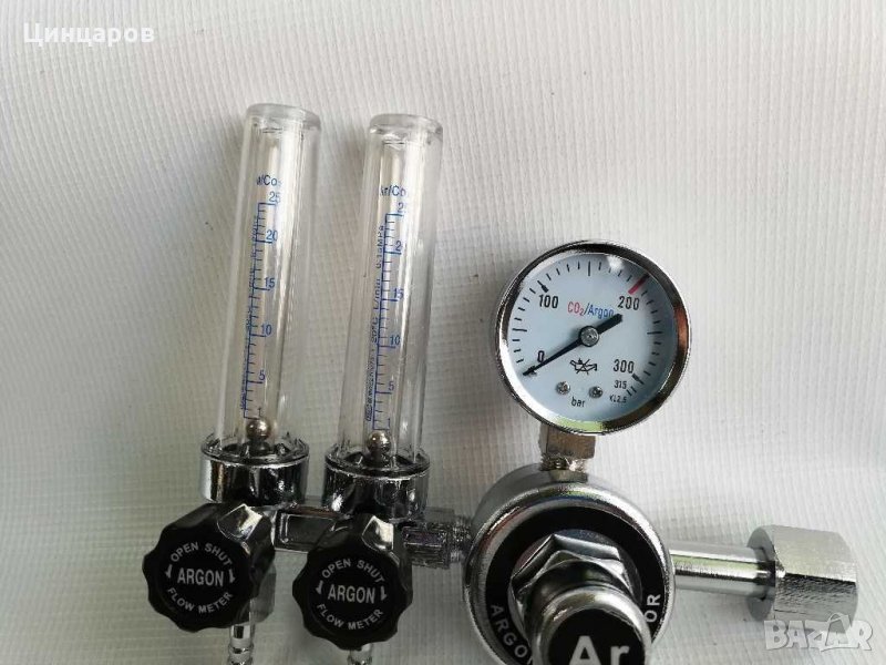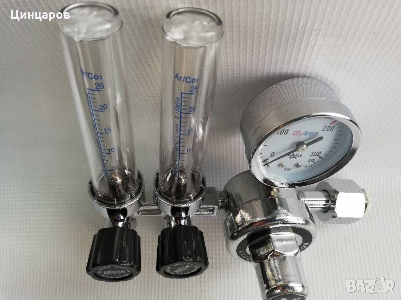 Редуцир-вентил за CO2/Аргон (коргон,хелий) с ротаметър,flow meter.Двоен изход,за два консуматора