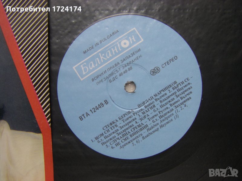 Грамофонна плоча - ВТА 12449 - Стефка Берова и Йордан Марчинков