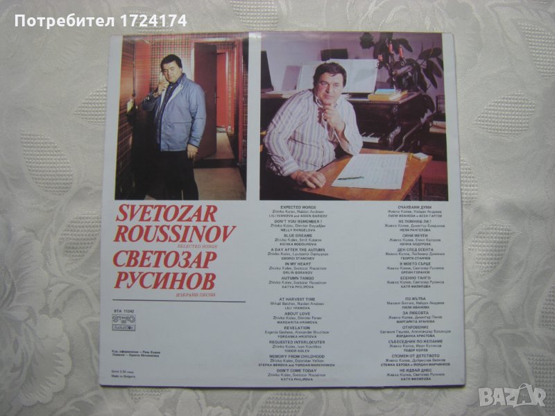Грамофонна плоча - ВТА 11242 - Светозар Русинов. Избрани песни по текст на Живко Колев, Михаил Белчев и Евгения Гешева