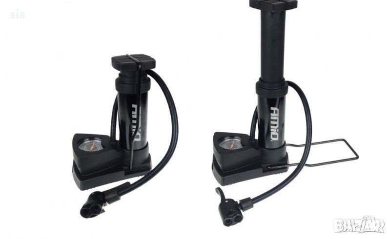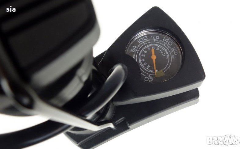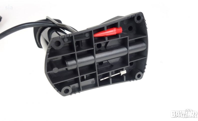 Има двойна универсална глава за автомобилни и велосипедни клапани. Освен това в комплекта са включени адаптер и игла за надуване на дюшеци, топки, надуваеми играчки и др