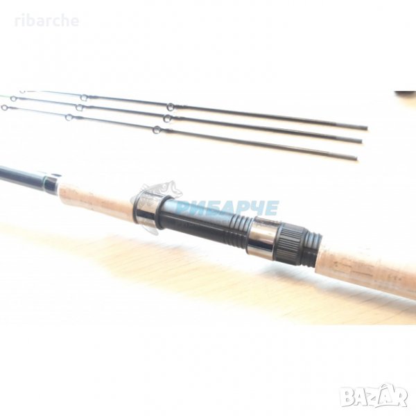 Карбонов телескопичен фидер с отлично качество на изработка , с тънка карбонова бланка , с 3 върха -карбонови ,със стегнат и бърз строй ,усилена акция до 150гр ,много лек и удобен ,с изцяло коркова дръжка . Предлага се с дължина 3.30м/3.30м / 3.60м / 3.90м